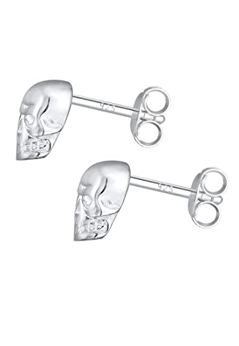 Elli Orecchini a Perno da Donna in Argento 925, Forma di Teschio, Argento Bianco
