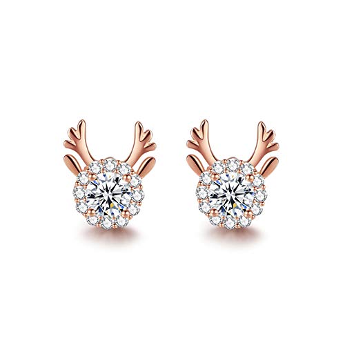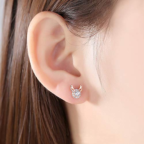 Materiale sicuro degli orecchini: questi orecchini a perno a forma di renna natalizia sono realizzati in argento Sterling 925 + placcato oro rosa + zirconia cubica bianca trasparente AAAAA. Lucidato, senza nichel, ipoallergenico, non cambia colore e lucido per sempre. Adatto per quasi tutte le orecchie sensibili. Gli zirconi cubici non cadono facilmente. Non devi preoccuparti che gli orecchini perdano pietra. Perfetto da conservare come gioiello natalizio.