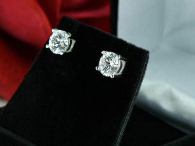 Orecchini a perno da donna in oro bianco massiccio da 18 carati, taglio rotondo da 0,80 carati, con diamanti naturali