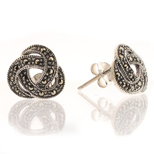 Orecchini a perno a forma di nodo celtico in argento Sterling con marcasite