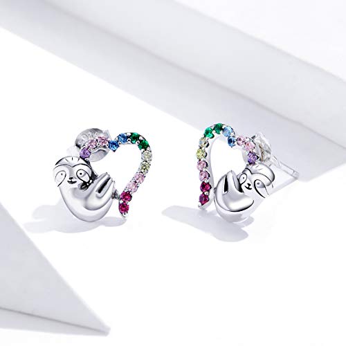 NewL Orecchini a perno a forma di cuore arcobaleno per le donne in argento Sterling 925 Koala bradipo animale orecchio rosa fine gioielli Brincos Arete