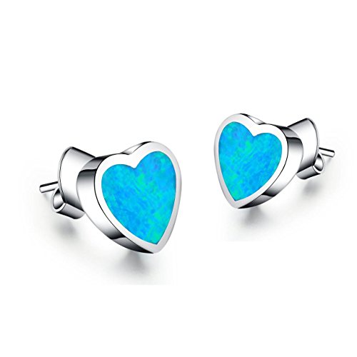 Orecchini a perno a forma di cuore con opale di fuoco blu verde per donne e ragazze