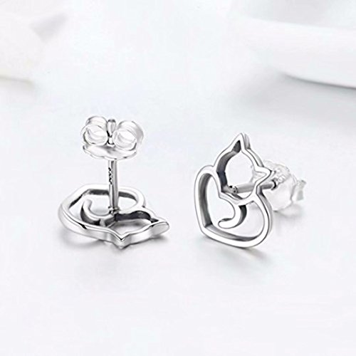 Orecchini a perno a forma di gatto, per donne e ragazze, regalo di compleanno per lei, in argento Sterling 925 e Argento, cod. FAE271+gift