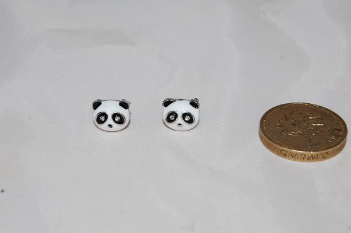 Orecchini a perno a forma di panda - in smalto rosso con steli in vero argento Sterling 925 - gioielli unici forniti con sacchetto regalo