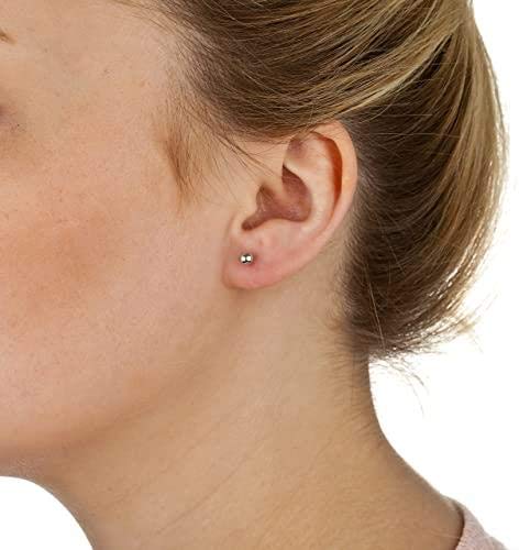 Orecchini a perno, di forma sferica, in oro bianco 9 ct, di 4 mm, in confezione regalo