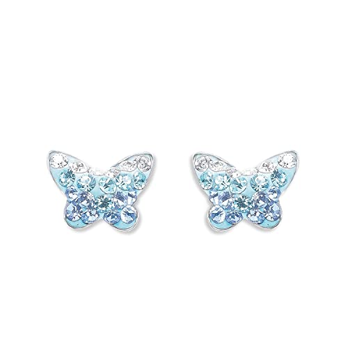 Amor Orecchini a perno Gioielli all'orecchio, con Preciosa, 0,6 cm, Blu, Farfalla, Viene fornito in una confezione regalo di gioielli, 9540761