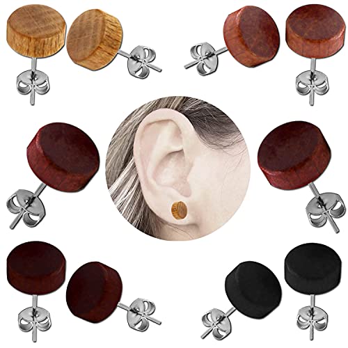 2 Orecchini a Perno legno immitation bottone cerchio marrone con custdia
