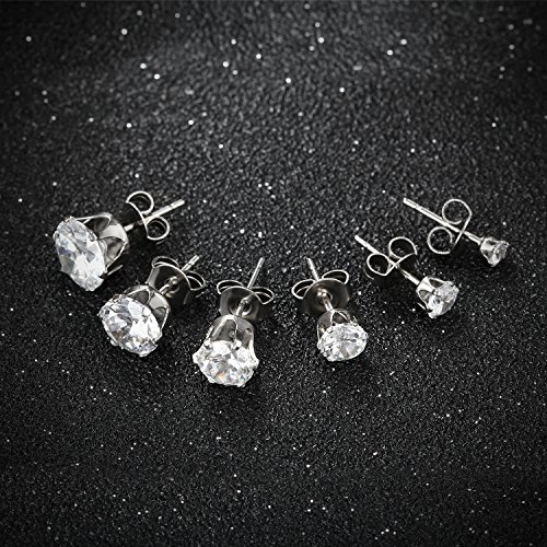 6 paia di orecchini a perno in ossido di zirconio, in acciaio inossidabile, per uomo e donna, colore bianco e nero, 3-8 mm, regalo di San Valentino, Capodanno