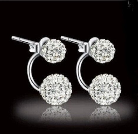 Orecchini a perno di tendenza, in argento sterling 925, a doppia sfera, con strass, con scatola