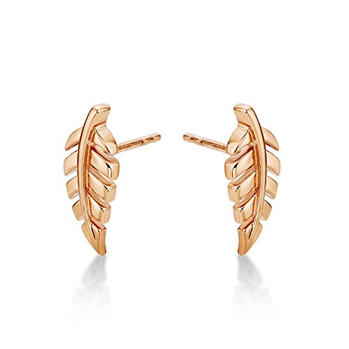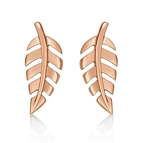 Orecchini in Oro Rosa con Piume, Argento Sterling Placcato in Oro Rosa 18 Carati. Orecchini con Piume Texturizzate Placcate in Oro Rosa.Orecchini in Oro Rosa con Clip Posteriori a Farfalla.