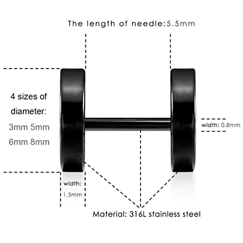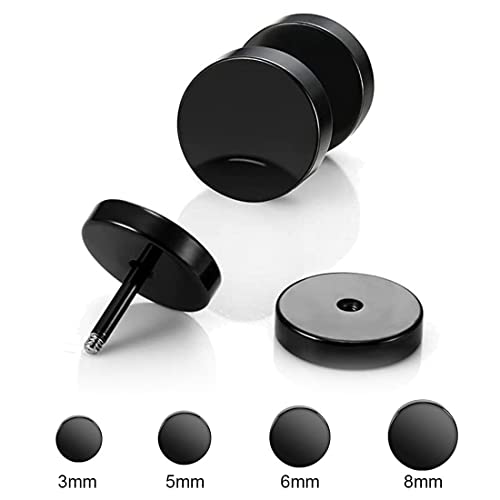 8 Paia di Orecchini Rhode Acciaio Inossidabile Chirurgico Anallergici per Uomo Donna Diametro 3mm 5mm 6mm 8mm(Argento Nero)