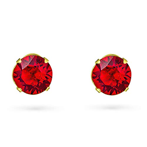 Orecchini Rossi Eleganti - Punto Luce Orecchini Donna Argento 925 Placcati Oro con Cristallo Rosso 6 mm - Orecchini Donna Rossi - Orecchini Donna Brillantini - Punto Luce Oro