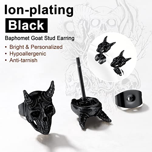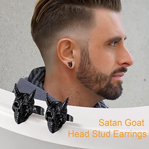 U7 Orecchini Satanici Donna Uomo in Acciaio Inossidabile, Nero Orecchini Acciaio con Teschio Pecora, Punk Bavant Stile Nero Orecchini, Regalo per Amanti Ragazzi
