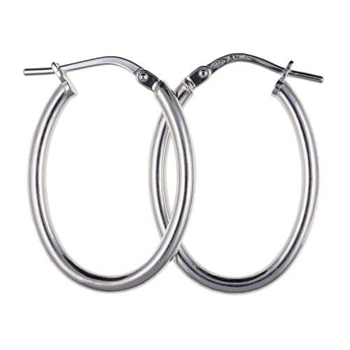Orecchini semplici a cerchio, modello creolo, forma ovale, 18 x 25 mm, in argento sterling 925, forniti in scatola regalo o sacchetto regalo