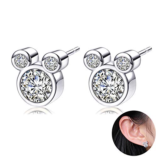 Orecchini signore delle donne 1pair argento placcato Cubic zirconi gioielli di cristallo bianco M mouse viti prigioniere degli orecchini Earbob per ragazze bambini in oro rosa