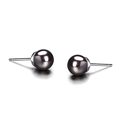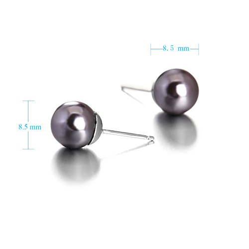 Orecchini tappabuco da donna, con perla naturale di acqua dolce grigia perfettamente circolare da 8,5