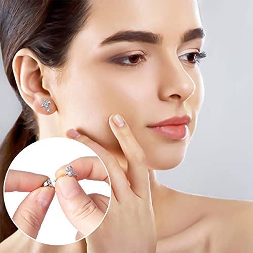 Orecchini a perno a croce: orecchini a perno a croce con 6 zirconi bianchi rotondi rendono la croce splendida e lucida. La zirconia cubica è incastonata nella lunetta