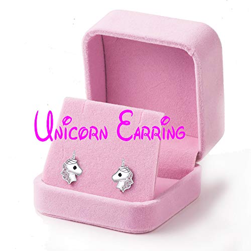 Orecchini unicorno Argento Carino Rosa Frizzante con zircone per bambine Festa di compleanno di gioielli Regalo adorabile Scatola di velluto unicorno (Rosa)
