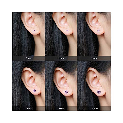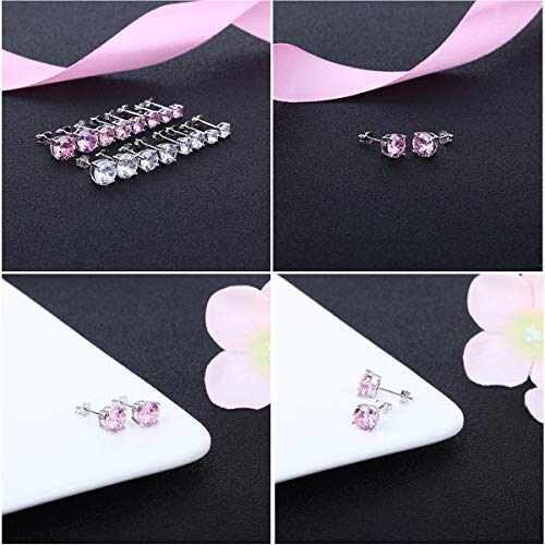 Orecchino a bottone Orecchini in Argento con Pink bianco Zirconi per Ragazze donna 4-8mm (rosa, 5)