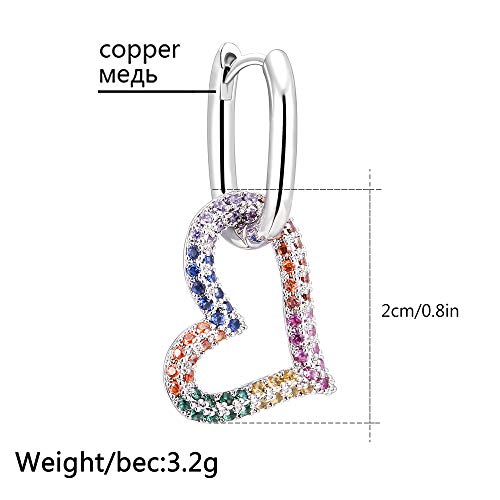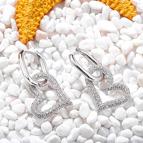 Orecchino a cerchio da donna a forma di cuore, orecchini a goccia placcati in oro rosa e argento ipoallergenici con zirconi (#1 Cristallo Bianco, #1 Placcato Argento)