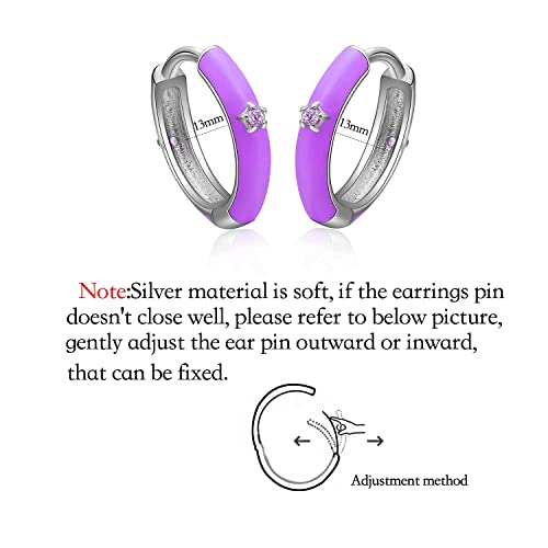 Orecchino a Cerchio Viola - Qings Mini Orecchini Cerchii Argento Sterling 925 con Piccolo Stella per Donna Ragazze