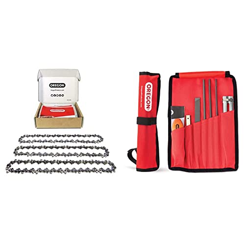 Oregon Confezione da 3 Catene 3/8" LP per Motosega da 52 Maglie di Trasmissione 1.3mm & Kit Di Affilatura Universale Per Motosega, Include Lime Tonde Da 5/32 Pollici