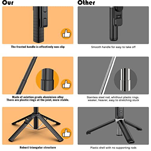 Orenal Treppiede per selfie stick da 102 cm, estensibile 3-1, con telecomando Bluetooth, mini bastone per selfie in alluminio