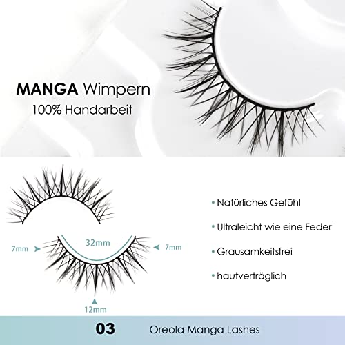 Oreola Anime Ciglia Riutilizzabili Manga Ciglia Wispy Spiky Ciglia corte Aspetto naturale Ciglia cosplay giapponesi Ciglia asiatiche morbide
