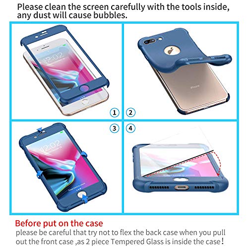 ORETECH Compatibile con Cover iPhone 8 Plus, Custodia per 7 Plus, [2x Pellicola Protettiva Vetro Temperato]Antiurto Ultra Sottile Hard PC Silicone Anti Graffio Cover per iPhone 8/7 Plus 5.5"-Blu Scuro