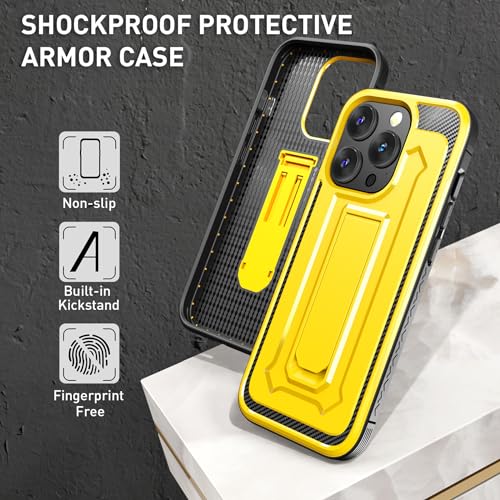 ORETECH Compatibile con Custodia iPhone 15 Pro with [1 X Pellicola Protettiva Vetro Temperato] Grado Militare Antiurto Morbida in Hard PC Silicone TPU con Supporto-Giallo