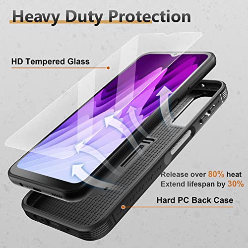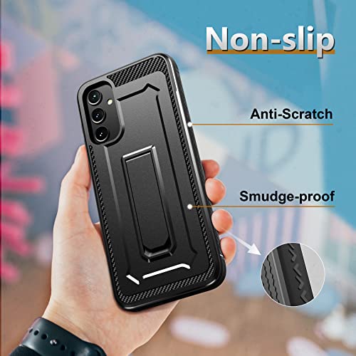 ORETECH Compatibile con Custodia Samsung Galaxy A14 5G, [1 X Pellicola Protettiva Vetro Temperato] Grado Militare Antiurto Morbida in Hard PC Silicone TPU con Supporto-Nero