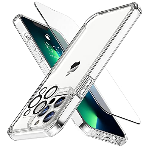 ORETECH Cover Custodia per iPhone 13 Pro Max (2021) 6.7", con [2 x Pellicola Protettiva in Vetro Temperato & 1 x Pellicola Fotocamera] Antiurto Ultra Sottile Hard PC Silicone Case Cover - Trasparente