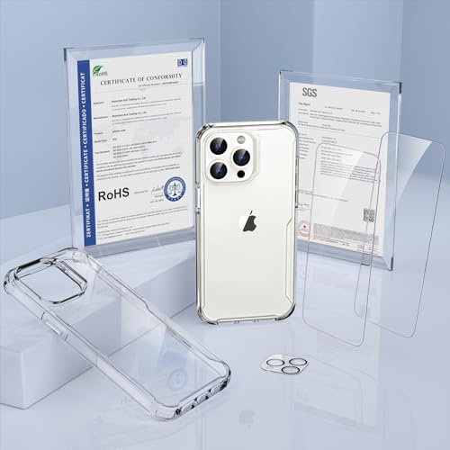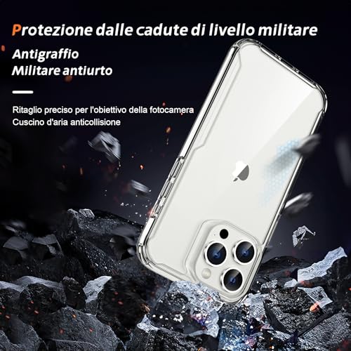 [Massima protezione] La custodia per iPhone 15 Pro è dotata di TPU e PC premium per la massima protezione da graffi e urti e una cornice morbida per assorbire gli urti. Il design antiurto e rialzato protegge il corpo dell'iPhone 15 Pro. Offriamo una protezione per schermo in vetro temperato da 2 confezioni e 1 confezione di protezione per obiettivo della fotocamera per fornire una protezione completa per il tuo telefono.