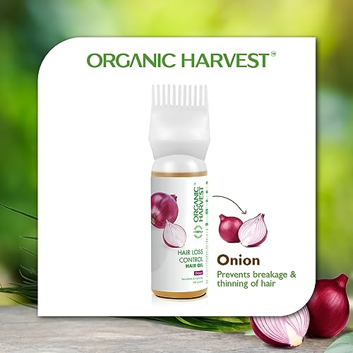 Organic Harvest Hair Loss Control Hair Oil: Onion | Hair Oil For Hair Fall & Regrowth | Red Onion Oil For Hair Growth | 100% American Certified Organic | Sulphate and Paraben-free | 150ml