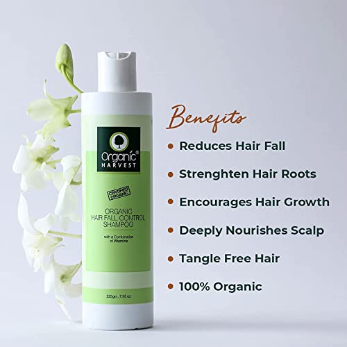 Organic Harvest Anti Hair Fall Control Shampoo, For All Hair Types, For Hair Growth, Hairfall, Hair Loss, Itchy & Dry Scalp Control, 100% Organic, Paraben & Sulphate Free - 225 ml