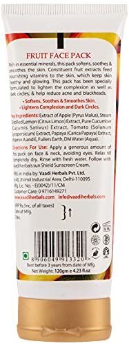Organic Refreshing Fruit Face Pack with Apple, Lemon & Cucumber - Anti-Acne - Anti-aging Facial Cream - Oil Control - Deep cleansing - Blackhead Acne Removal Treatment for Men or Women - 2 X 120 Gms