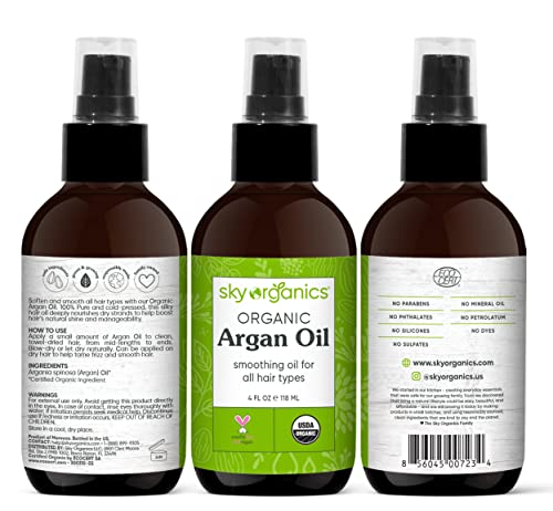 Sky Organics Organic Argan Oil for Hair, 100% Pure & Cold-Pressed USDA Certified Organic to Hydrate, Soften & Smooth, 4 fl. Oz