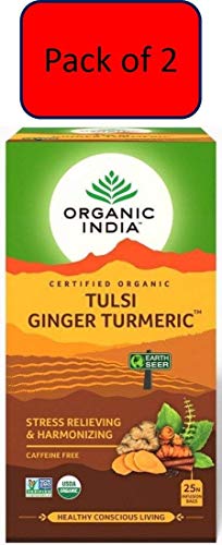 Organics India Tulsi Ginger Turmeric Tea - 25 Infusion Bags (Pack of 2)