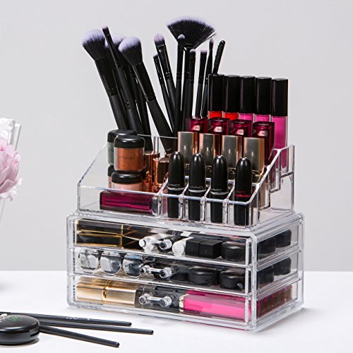 2-PIECE DESIGN: Stack the top lipstick holder and bottom drawer sections of the makeup organiser storage together or separate them to spread out your makeup arsenal and easily take just what you need on the go.