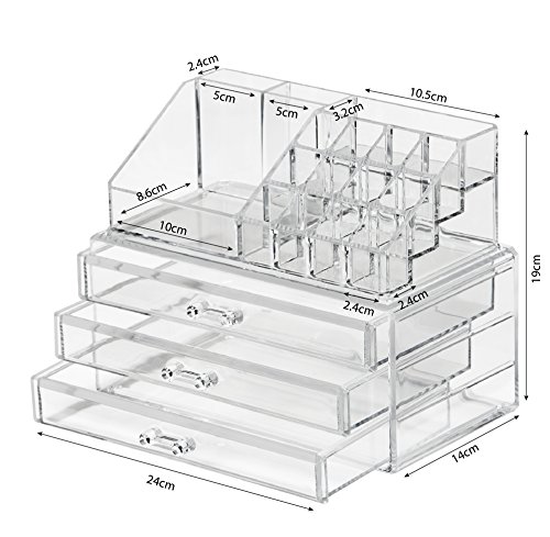 CRYSTAL CLEAR: Transparent, high-quality acrylic looks so cool and modern with a glossy, clear finish that allows you to see your makeup collection or jewelry stored inside.