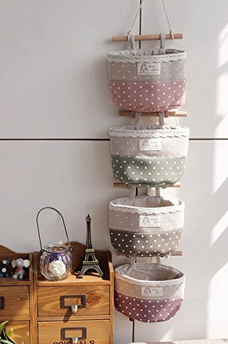 Organizer da appendere, sacche portaoggetti, Storage bag, Organizzatore pensile, Sacche portaoggetti in cotone e lino per parete, porta, ripostiglio 4 Pocket