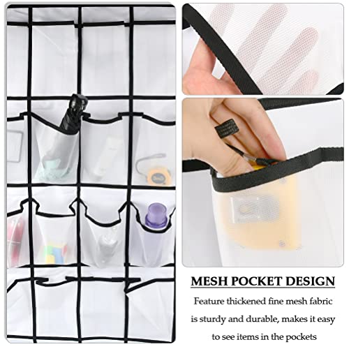 【24 spaziose tasche a rete】 Grandi tasche a rete per riporre le scarpe, le dimensioni della sospensione sono 55 × 170 cm / 21,6 × 59 pollici. Un totale di 24 spaziose tasche a rete, borse per la conservazione sospese, possono essere appese alle porte standard o alle aste dell'armadio. La dimensione di ogni griglia è 8,5 "x 5,5" e la capacità è grande, quindi puoi posizionare molti oggetti.