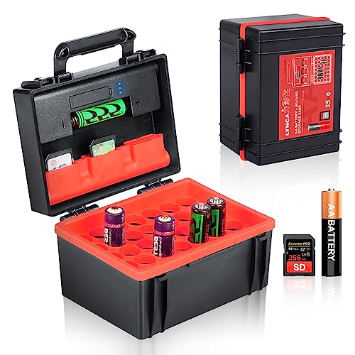 41 slot organizer per batterie con tester per batteria rimovibile, impermeabile e resistente agli urti, supporto per 35 batterie AA 6 porta schede SD (D750B)