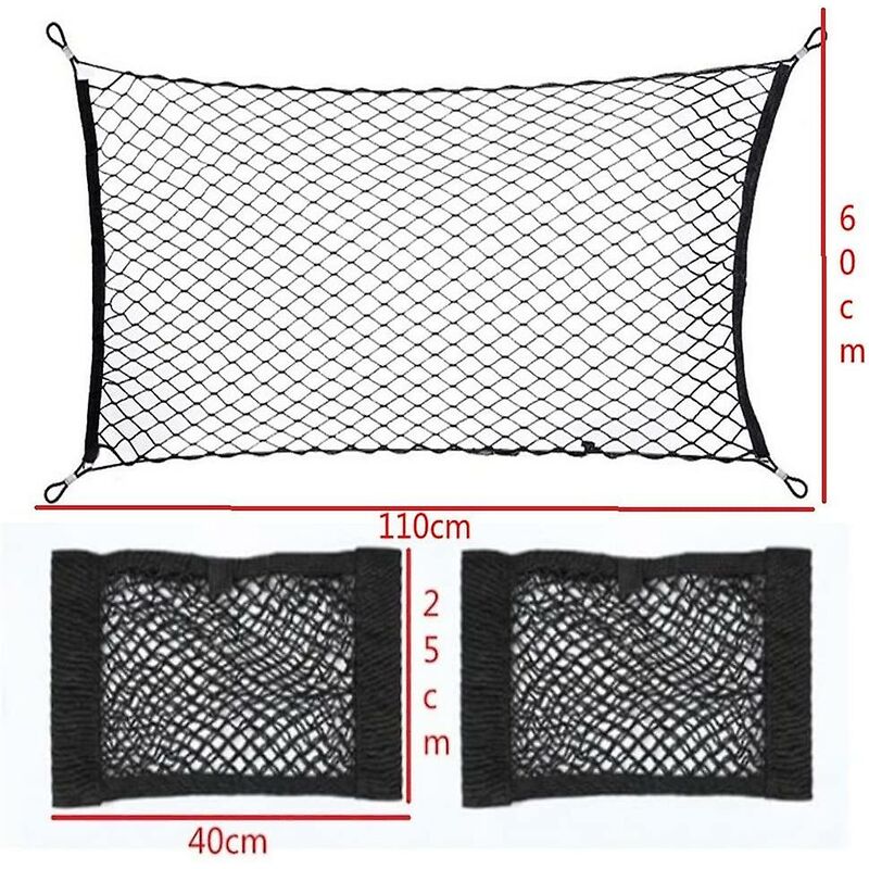 Materiale: Fibra di polipropilene+NR, Dimensioni: 110*40 cm Confezione inclusa: 1pz organizer per bagagliaio Pratico e facile da installare grazie ai 4 moschettoni, accessori indispensabili per le auto Risparmia spazio in auto, efficace per evitare di fare commissioni dappertutto.adatto per il camion o SUV.