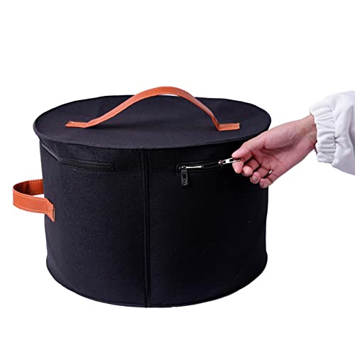 Organizer per Cappelli in Feltro, Scatola portaoggetti Rotonda per Cappelli con 2 coperchi, contenitori per Animali in Peluche, cappelliera da Viaggio Portatile per Donne e Uomini, Grigio Nero