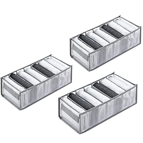 Organizer Cassetti Armadio 3 Pezzi,Porta Magliette Armadio con Maneggiare,Porta Pantaloni per Armadio,Organizer Pantaloni Armadio per Riporre Jeans, Calzini, Cravatte, Sciarpe e Fazzoletti (S-7Gitter)