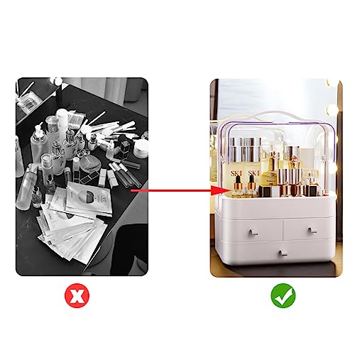 RMAN, Organizer e contenitore per trucchi e prodotti per la cura della pelle, con coperchio e cassetti, impermeabile e antipolvere, portatile, da posizionare su toeletta e mobili