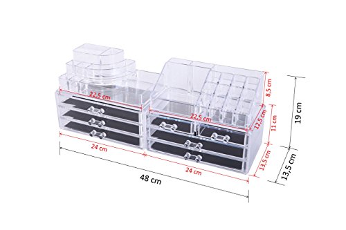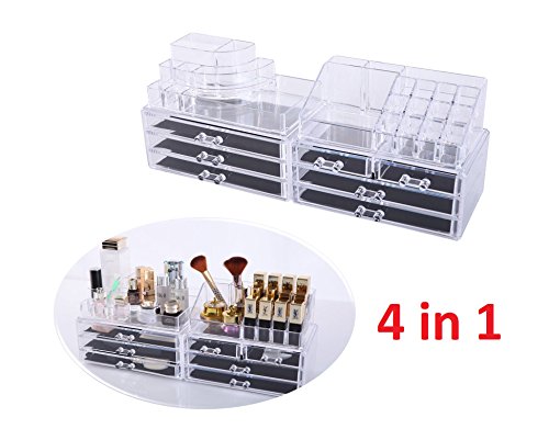Oule GmbH, organizer per cosmetici 4 in 1, trasparente, con 7 cassetti, 8 livelli