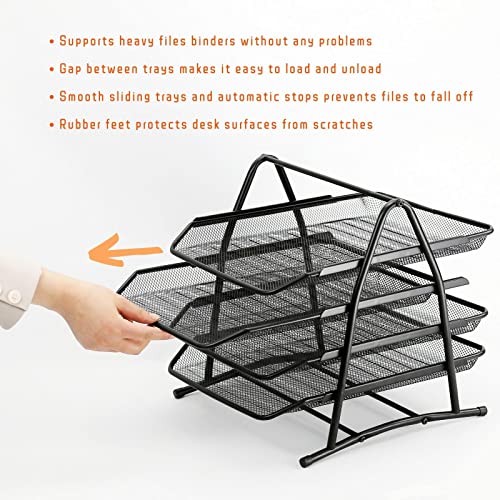 Organizer per documenti da scrivania con 4 vassoi, per lettere, articoli da ufficio e documenti, in rete, per casa e ufficio (nero)