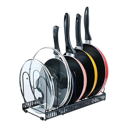 7 scomparti regolabili: progettati per essere impilati facilmente, 7 scomparti regolabili possono contenere fino a 7 padelle. Larghezza regolabile, è adatto per pentole e coperchi di qualsiasi dimensione.